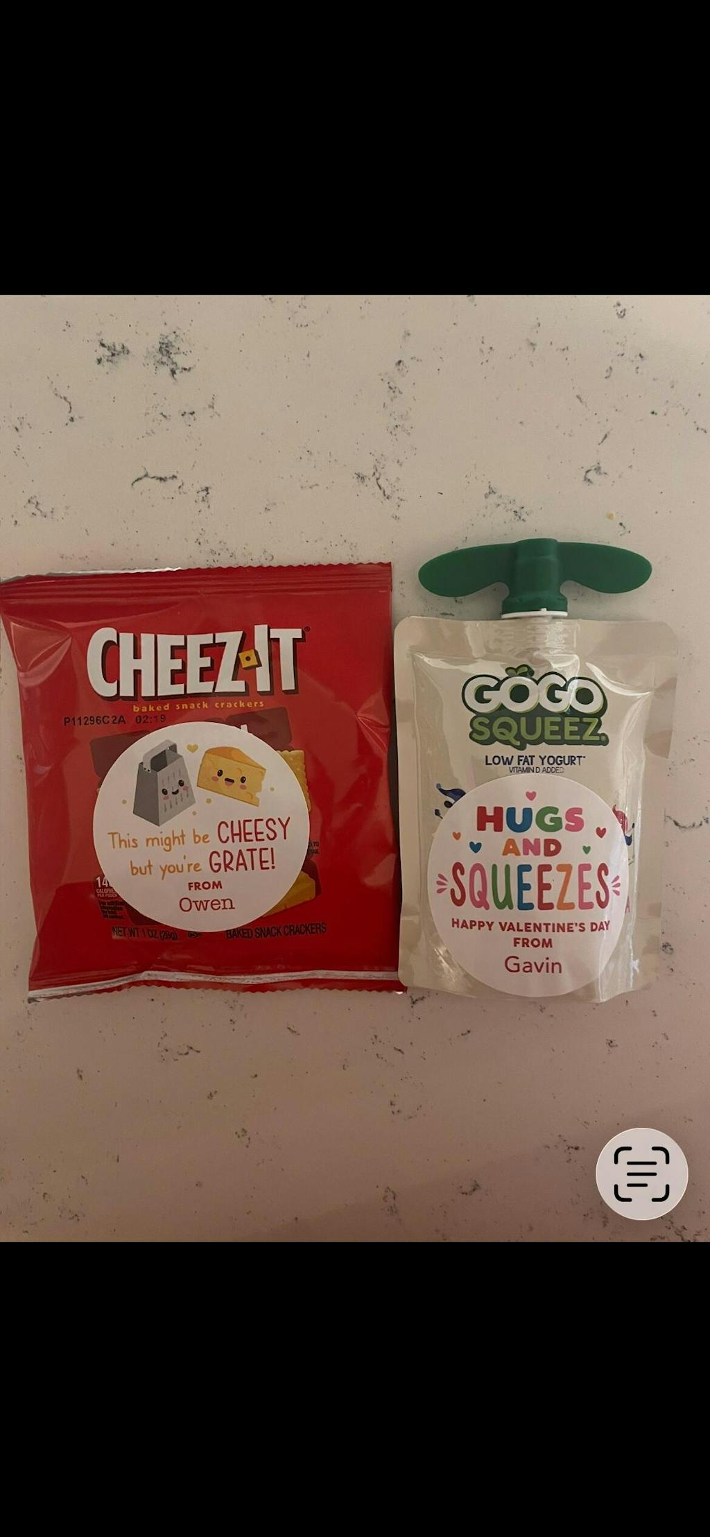 Make adorable Valentine's Day treats with personalized labels! These cute labels feature a block of cheese and a cheese grater with the message "This might be CHEESY but you're GRATE!" They're perfect as classroom gifts and party favors.