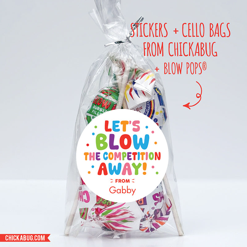 To make goody bags, pair these colorful labels with our favor bags and fill with gum balls, Blow Pops®, or bubbles such as these 4" tall bubble wands and these 3-1/3" tall bubbles.