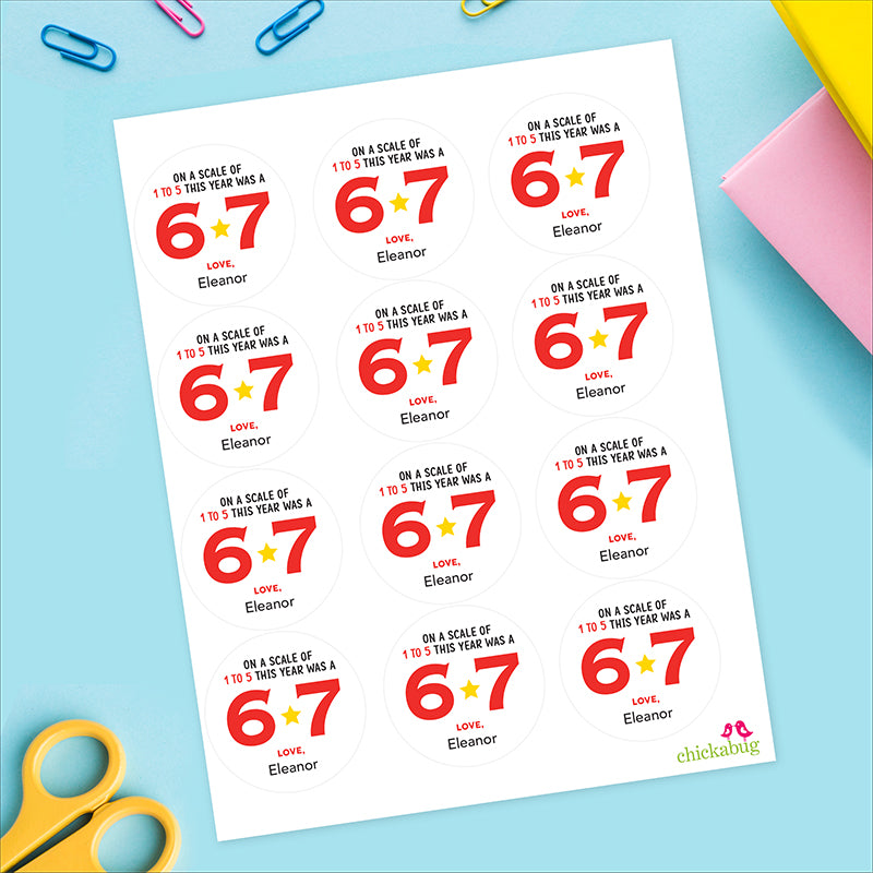 Red "On a Scale of 1 to 5 This Year Was a 6 7" End of School Stickers