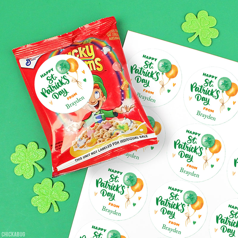 Celebrate St. Patrick's Day with personalized stickers! They're perfect for making classroom gifts when paired with our favor bags (sold separately). Just peel, stick, and you're done!