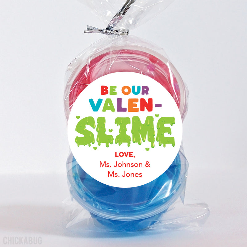 These personalized stickers are perfect for classroom gifts and party favors. Pair them with slime (or another treat of your choice) plus favor bags (sold separately), and your Valentine gifts are done!